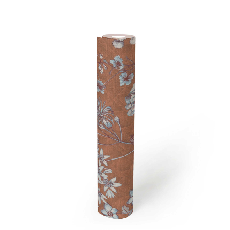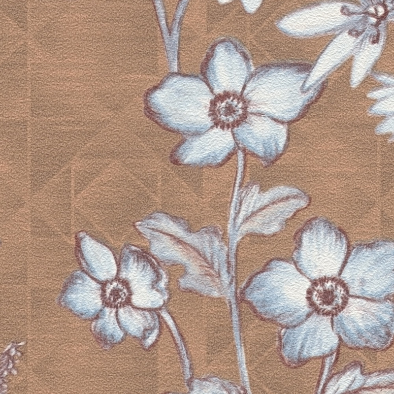 fijn gestructureerd behang, oranje/bruin, licht blauw, wit