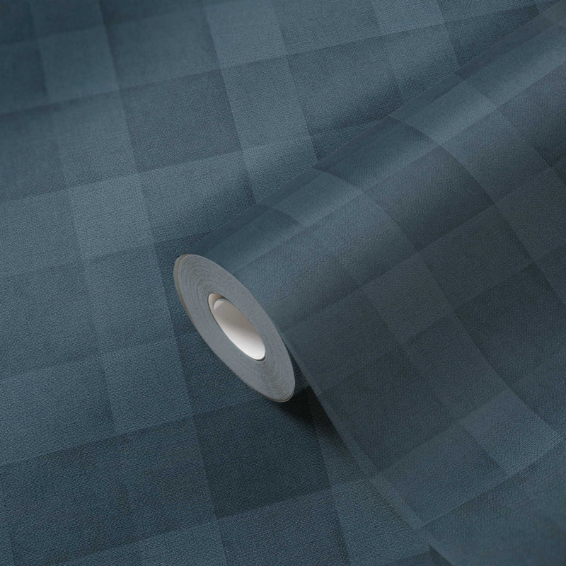BLAUWE RUITEN BEHANG - AS Creation Natural Living "Eco" 386642